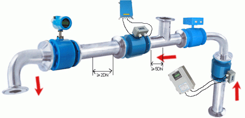 流量控制閥門(mén)應(yīng)安裝在傳感器上游側(cè)的被測(cè)管道內(nèi),流量調(diào)節(jié)閥門(mén)應(yīng)安裝在傳感器下游側(cè)。
