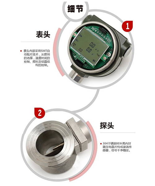 壓力損失小,量程范圍大,精度高,在測(cè)量工況體積流量時(shí)幾乎不受流體密度、壓力、溫度、粘度等參數(shù)的影響。無(wú)可動(dòng)機(jī)械零件,因此可靠性高,維護(hù)量小。采用壓電應(yīng)力式傳感器,儀表參數(shù)能長(zhǎng)期穩(wěn)定,可在-20℃~+250℃的工作溫度范圍內(nèi)工作。有模擬標(biāo)準(zhǔn)信號(hào),也有數(shù)字脈沖信號(hào)輸出,容易與計(jì)算機(jī)等數(shù)字系統(tǒng)配套使用,是一種比較先進(jìn)、理想的流量?jī)x表