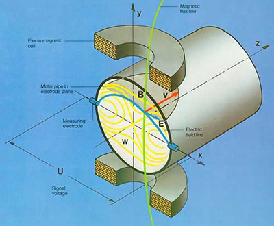 由上式可知,當(dāng)測量管結(jié)構(gòu)一定時,體積流量qν與比值e/B成正比,面與流體的狀態(tài)和物性參數(shù)無關(guān),測量比值e/B即可得到體積流量值qν。當(dāng)磁感應(yīng)強度B為恒定值時,體積流量qν與感生 電勢e成正比。B是直流磁場或正弦波交流磁場或其它類型磁場的磁感應(yīng)強度。它由流量計的勵磁系統(tǒng)提供。勵磁系統(tǒng)可以給電磁流量傳感器提供多種形式的磁場波形。不同的磁場波形,直接決定了電磁 流量傳感器工作磁場的特征,也基本上決定了流量計流量信號的處理方法,對流量計的工作性能有很大的影響。所以,自電磁流量計進入商用化以來,勵磁方式始終是人們研究的熱點問題。從開始應(yīng)用的直流勵磁到現(xiàn)在雙頻方波勵磁,已使用過多種方式的勵磁技術(shù)。