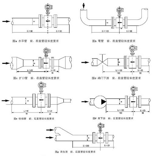 3.異徑管無法滿足錐度要求,必須訂制加長的漸擴或漸縮管。如開發(fā)區(qū)某大型外資企業(yè)依據(jù)其用水量原設(shè)計選擇DN600供水流量計水表組,企業(yè)向供水中心提出水表組的建設(shè)費用,以及因供水流量計直管段的要求使水表房過于狹長的緣故,我們考慮采用選擇小一級甚至二級管徑尺寸的供水流量計,水流速度均在其允許范圍內(nèi)。依據(jù)標(biāo)準(zhǔn)圖集異徑管尺寸計算,DN600×400異徑管中心圓錐角為20.42°,DN600×500異徑管中心圓錐角為16.03°,均大于15°,不符合產(chǎn)品設(shè)計要求。因此必須訂制非標(biāo)的漸擴或漸縮管,加長異徑部分的長度,使中心圓錐角減少到錐度要求以內(nèi)。
