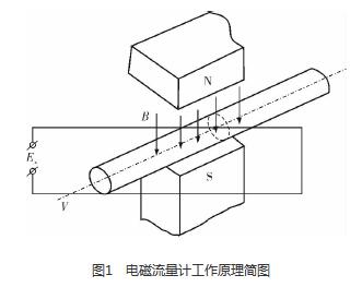 硝酸管道流量計(jì)是利用法拉*電磁感應(yīng)定律設(shè)計(jì)的流量測(cè)量?jī)x表,用于測(cè)量導(dǎo)電液體的體積流量。根據(jù)法拉*電磁感應(yīng)定律,當(dāng)導(dǎo)體切割磁力線運(yùn)動(dòng)時(shí),導(dǎo)體內(nèi)將產(chǎn)生感應(yīng)電動(dòng)勢(shì)Ex(圖1),方向根據(jù)右手定則確定,感應(yīng)電動(dòng)勢(shì)Ex的大小與磁場(chǎng)的磁感應(yīng)強(qiáng)度B、傳感器管道的內(nèi)徑D和流過(guò)導(dǎo)電液體的流速V成正比,B、D、V三者相互垂直,即Ex=BDV。