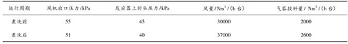 煤氣流量計(jì)煮洗吹掃后,裝置運(yùn)行期間無燃爆事故,且裝置運(yùn)行的風(fēng)量明顯提高,系統(tǒng)阻力明顯降低,投料量增加?,F(xiàn)將煮洗前后的運(yùn)行數(shù)據(jù)對比如下: