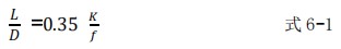 ⑤與流量計相連接的前后管道的內(nèi)徑應(yīng)與流量計口徑一致。管道和流量計連接處不許有凸出物伸入管道內(nèi),以免改變通道截面和流量計進口流場分布,并要求管道中心河流量計中心一致。流量計上游直管段長度 L 與管道內(nèi)徑 D 的比值應(yīng)滿足式 6-1 的要求: